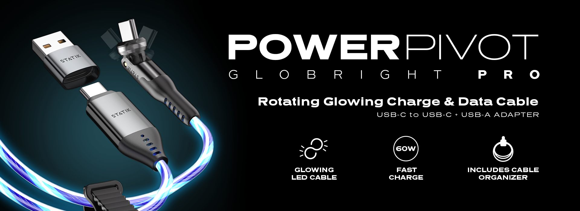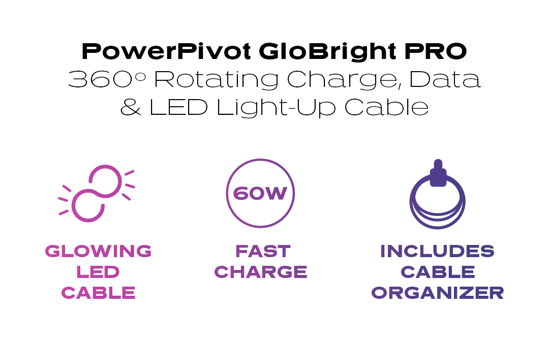 Pro Exclusive: BlitzCharge Fast Charging. The same awesome LED design of our PowerPivot GloBright cable, now with ultra-fast BlitzCharge for phones as well as large devices such as Chromebooks, MacBook Air, fast-charging Samsung devices, and more.