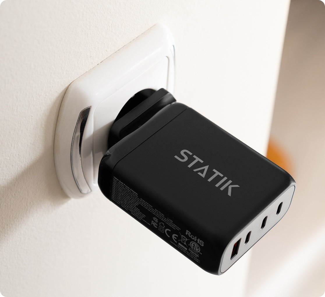 From your laptop at the office to your phone at the airport, the GaN Charger keeps every device powered without the clutter of multiple adapters. Its 100W output can fast-charge your MacBook, phone, tablet, and earbuds at the same time, all while staying cool and protecting your batteries. With foldable prongs and a travel-ready design, it’s small enough for your pocket and powerful enough to replace the pile of chargers in your bag.