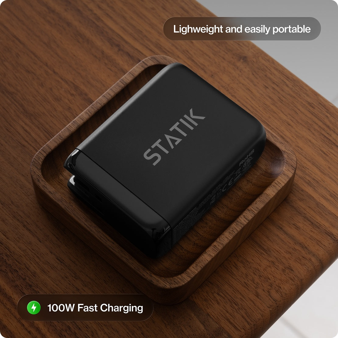 Portable 100W GaN Power Adapter, Charge 4 devices at once, Fast Charging, Smart protections, Lightweight and Portable, Up to 7x more power than typical chargers (5w)