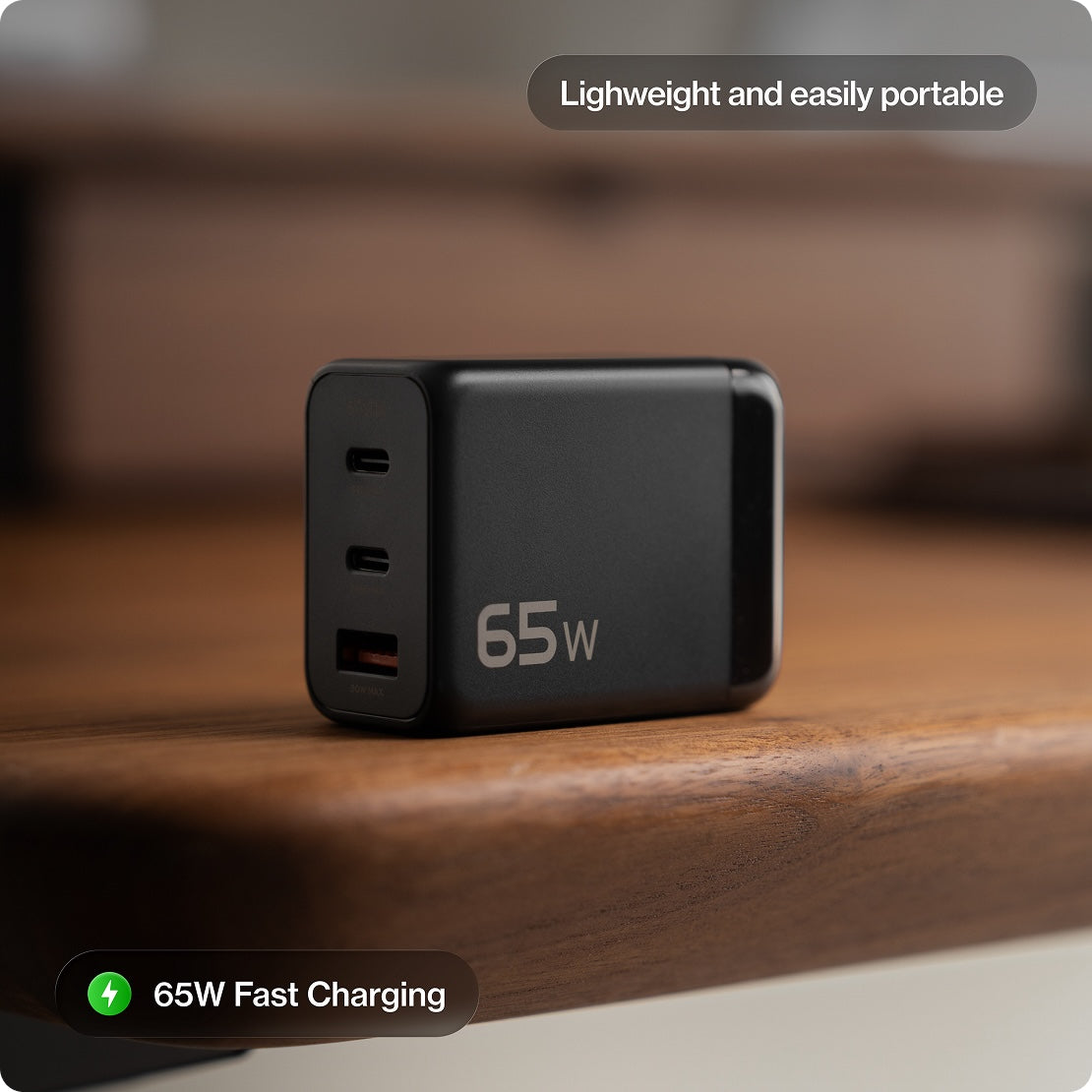 65W GaN charger with 3 ports for all your devices.