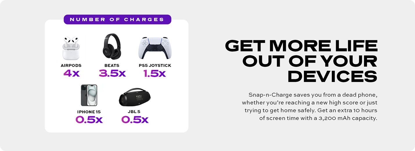 Never lose another memory. With the Snap-n-Charge, you’ll always be ready to capture life’s most spontaneous moments.