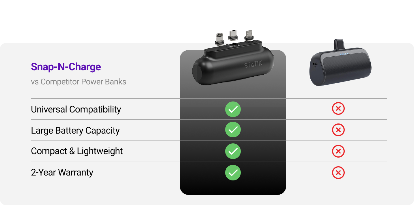 Snap-N-Charge | Ultra Portable & Travel-Ready Magnetic Charger | Universal 3200 mAh Power Bank | USB-C, Lightning & Micro-USB